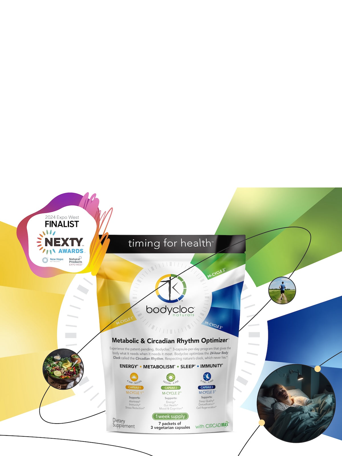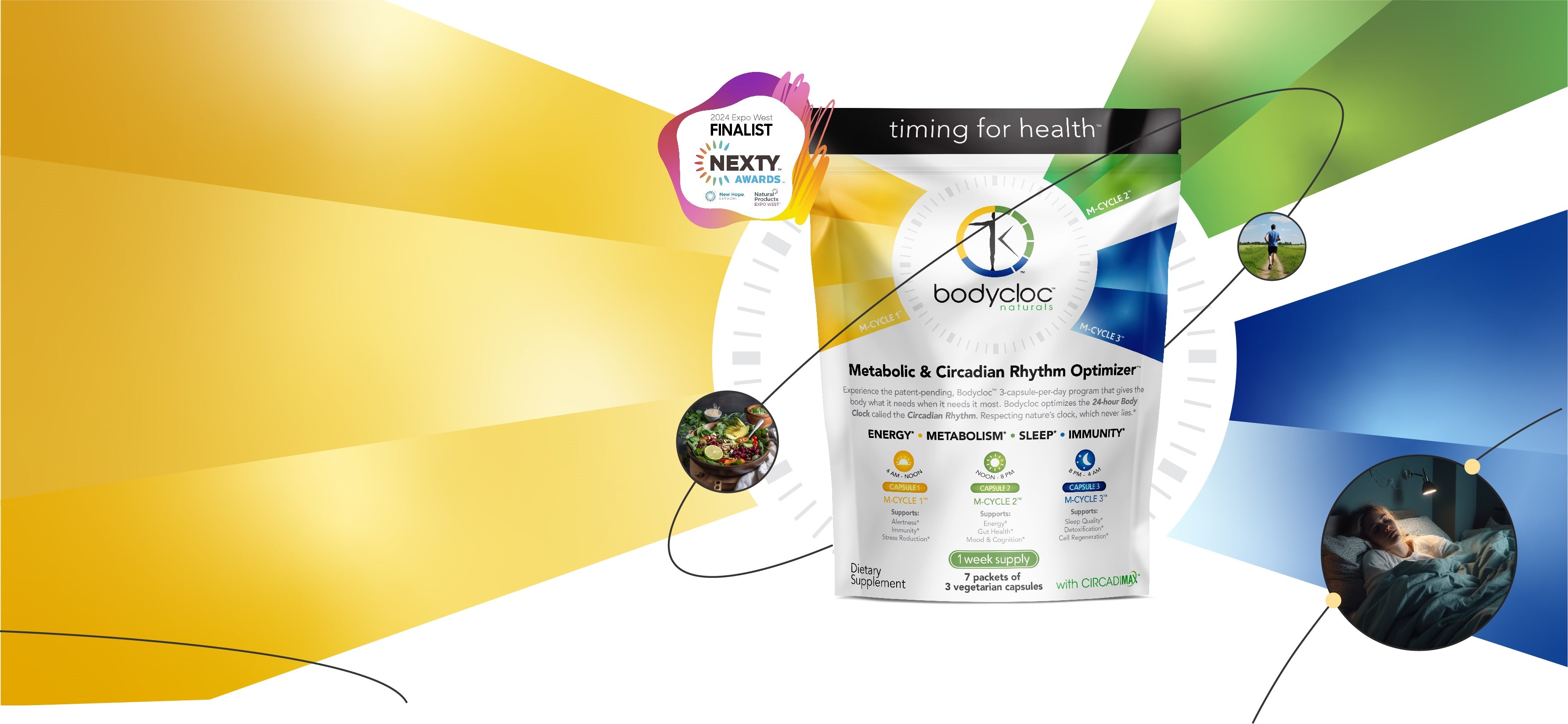 Experience the patent-pending, Bodycloc™ 3-capsule-per-day program that gives the body what it needs when it needs it most. Bodycloc optimizes the 24-hour Body Clock called the Circadian Rhythm. Respecting nature’s clock, which never lies™.